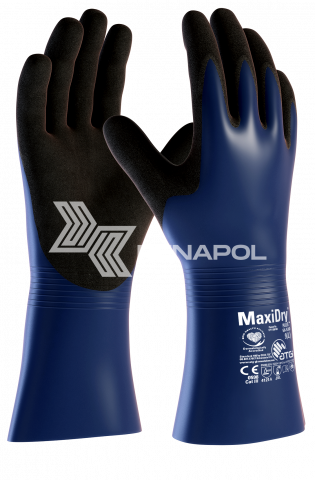 Rękawice MaxiDry® Plus™ 56-530 są certyfikowane zgodnie z normą EN ISO 374:2016 + A1:2018. Rękawice zostały zaprojektowane i stworzone dla osób mających styczność z substancjami chemicznymi, w przypadku których wymagany jest dobry stopień ochrony.