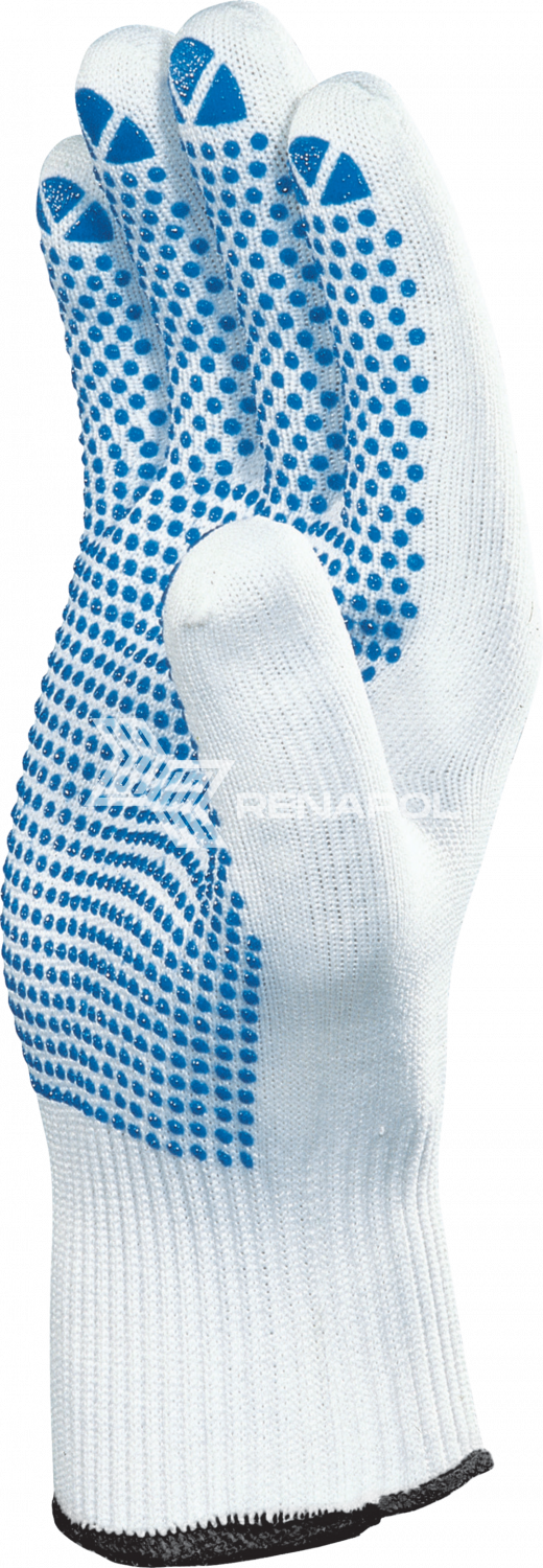 Rękawica z poliamidu teksturowanego 100%. W nadgarstku ściągacz 6 cm. Kropki PVC na stronie chwytnej. Ścieg 13. 100% poliamid teksturowany. Kropki z PVC.- Podkład : Dzianina - Poliamid- Wypustki PCV- Ścieg : 13Zagrożenia:- ZużycieNormy/Certyfikaty:- EN 388 : 214XX