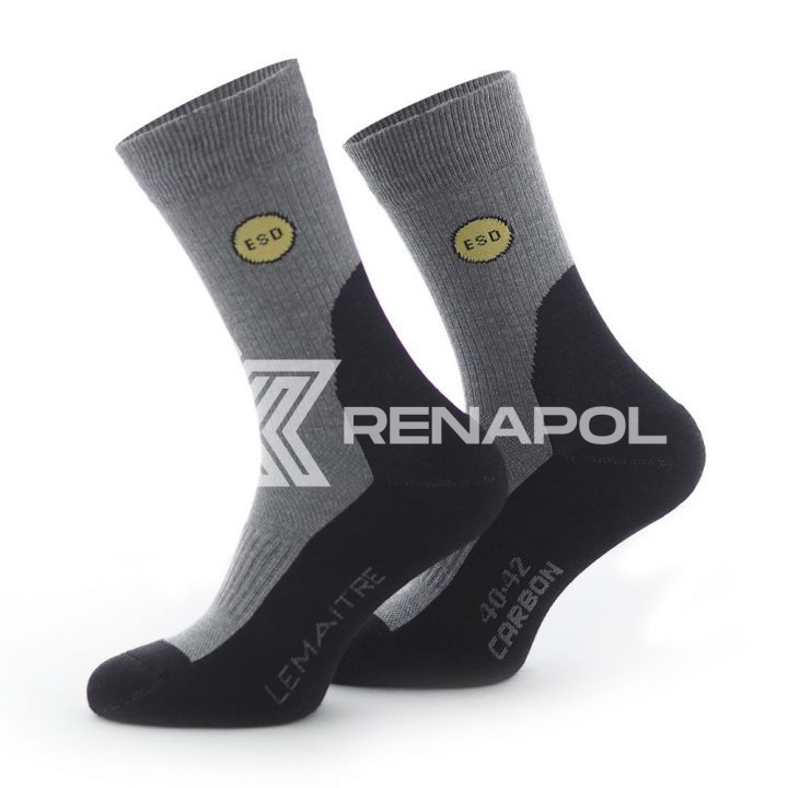 Skarpety LEMAITRE LINDOR BLACK odpowiednie do użytku w przemyśle elektronicznym i motoryzacyjnym. Rozpraszają elektryczność statyczną oraz chronią komponenty elektroniczne. Powłoka antybakteryjna. Przewodzące włókno węglowe Carbon Tech® na całej powierzchni stopy.