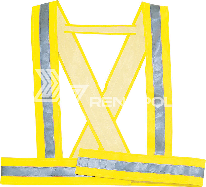 Szelki. Zapinanie na rzep. Szerokość taśm w pasie i na ramionach: 7,5 cm. Materiał ostrzegawczy: kolor srebrny - montaż szelkowy. Tkanina: poliester Oxford powlekany PU. Pasy odblaskowe naszywane.